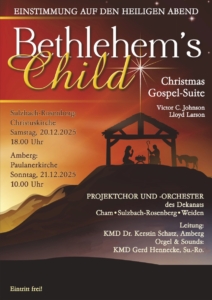 Am Vorabend (Samstag, 20. Dezember, 18.00 Uhr) ist das Werk beim Abendgottesdienst in der Christuskirche Sulzbach-Rosenberg zu hören. Herzliche Einladung zu beiden Gottesdiensten.
