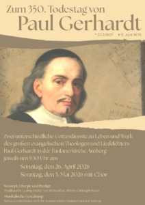 In diesem Jahr jährt sich der Todestag von Paul Gerhardt zum 350. Mal. Wir nehmen das als Anlass und feiern zwei Gottesdienste, in denen das Leben und Wirken von Paul Gerhardt in den Blick genommen wird.