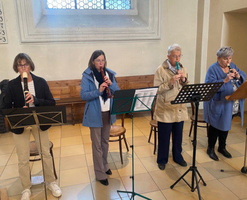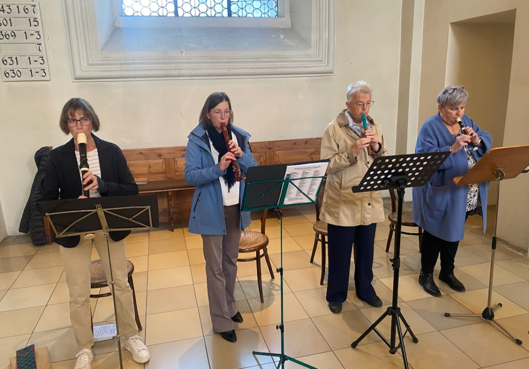 Seit Dezember 2024 treffen wir uns regelmäßig, um gemeinsam mit unseren Blockflöten mehrstimmig zu musizieren. Unser Flötenkreis besteht aus engagierten Spielerinnen und Spielern, die mit Sopran-, Alt- und Tenorblockflöten Lieder, Choräle und Musikstücke verschiedener Stile und Epochen zum Klingen bringen – mal festlich, mal besinnlich, mal beschwingt.